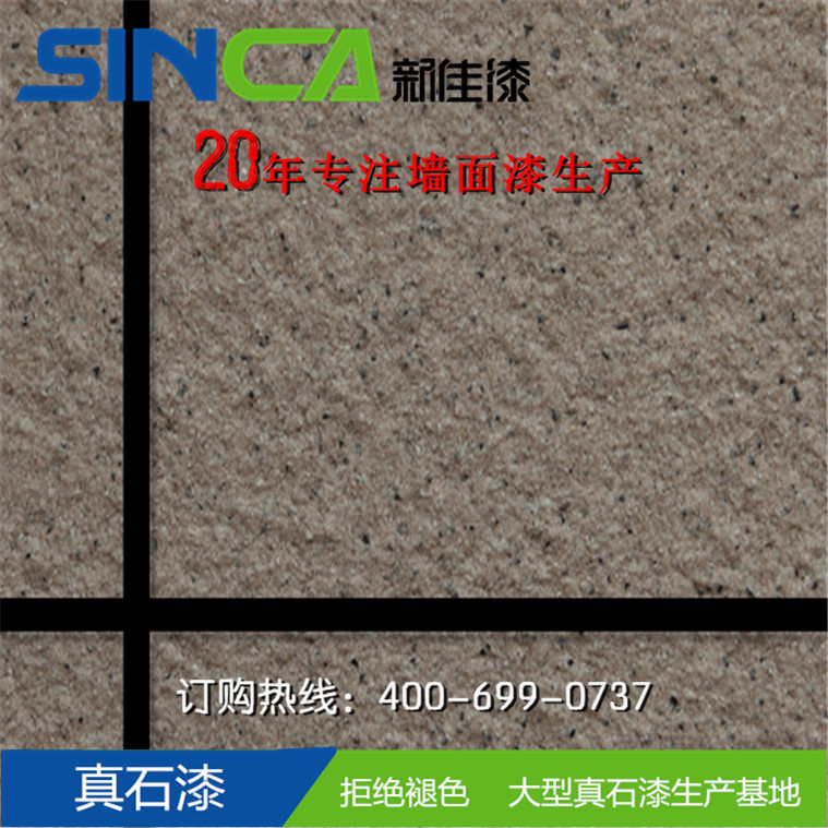 真石漆是一種裝飾效果酷似大理石、花崗石的一種新型裝飾材料。主要采用各種顏色的天然彩砂配制而成,真石漆裝修后的建筑物,具有天然真實的自然色澤,給人以高雅、和諧、莊重之美感,適合于各類建筑物的室內(nèi)外裝修。特別是在曲面建筑物上裝飾,可以收到生動逼真,回歸自然的功效。新佳真石漆是由天然花崗巖、大理石的碎料調(diào)制而成,其顏色為純天然顏色,不添加任何人工色素,具有持久的保色性。真石漆具有耐水、耐堿、無毒、無味、粘接力強等優(yōu)點;真石漆具有良好的附著力,還可以延長建筑物的使用壽命。