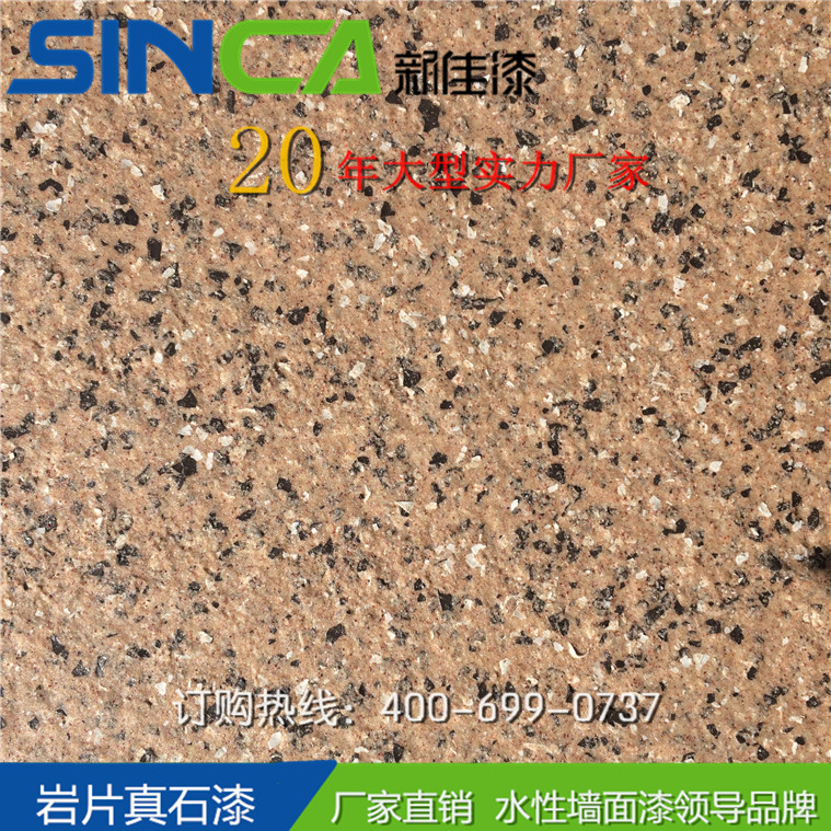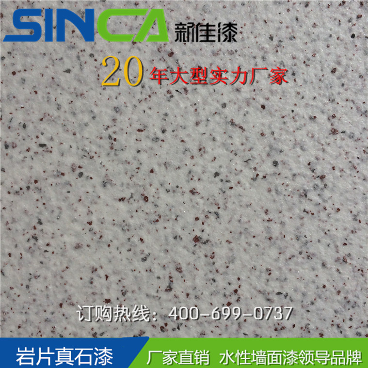新佳巖片漆是最能展現(xiàn)天然花崗巖特色的新一代墻面水性環(huán)保巖片漆。因此巖片漆,也叫仿花崗石漆、花崗巖石漆,采用天然彩砂,水性高分子樹脂及合成巖片復(fù)制而成。具有超強(qiáng)附著力、防水性、抗污性、耐候性,能夠逼真展現(xiàn)花崗巖紋理效果,完全媲美天然花崗巖的質(zhì)感。屬新型純水性化的不含任何溶劑型物質(zhì)的砂壁狀建筑涂料,富有花崗巖的風(fēng)格,花崗巖的內(nèi)涵,花崗巖的高貴,花崗巖的品位,是傳統(tǒng)天然真石漆的升級(jí)換代品種。