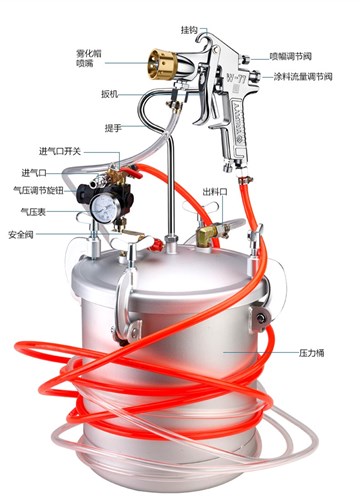 噴槍使用完成后需要將壓力罐與噴槍及時(shí)清洗,在不拆除情況下,應(yīng)將清水倒入灌中,反復(fù)噴洗直至噴出全是清水,存放時(shí)應(yīng)當(dāng)拆卸氣管。